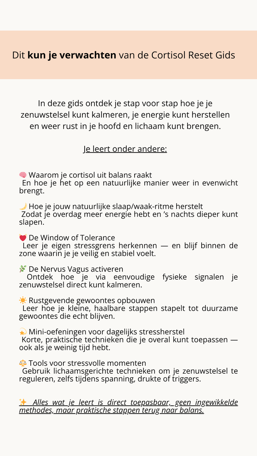 🌿 Het doel is niet om je cortisol te verhogen, maar om rust, herstel en stabiliteit in je zenuwstelsel terug te brengen.