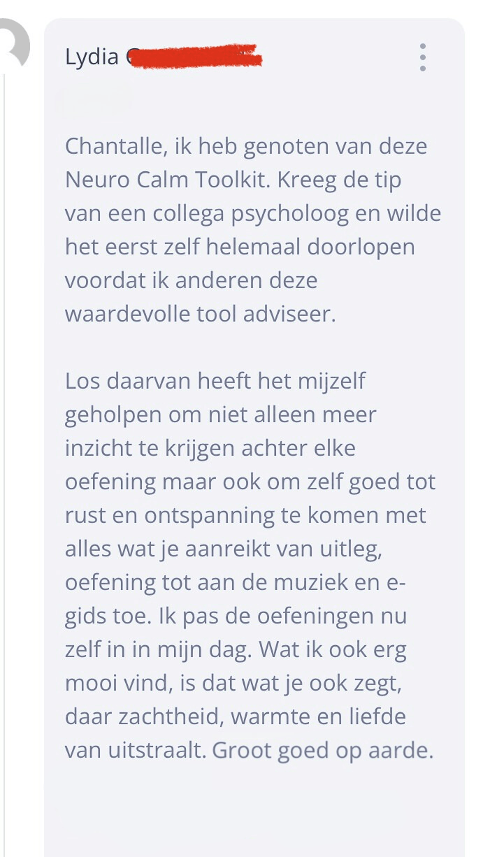 Daarom is de Neuro Calm Toolkit bewust betaalbaar zodat iedereen de kans krijgt om met meer lichtheid en vertrouwen te leven. Want hoe eerder je leert omgaan met spanning, hoe sneller je energie en levenskwaliteit terugkereren.