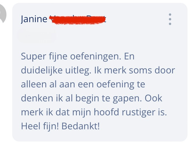 Je ontvangt een week lang dagelijks één oefening die je zenuwstelsel ondersteunt bij het vinden van balans. Zo voorkom je overweldiging en kun je bewust ervaren wat elke oefening voor je doet. Daarnaast krijg je nog fijne bonussen die je proces verder ondersteunen.